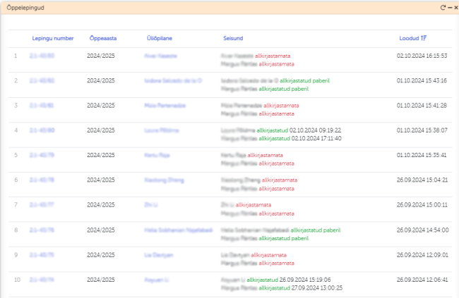 Õppelepingute vaates on võimalik vaadata erinevaid õppelepinguid. | Õppelepingute vaates on võimalik vaadata erinevaid õppelepinguid. | ||